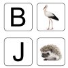 2. Na podkladovú kartičku s názvom zvieratka sa priraďuje príslušný reálny obrázok daného zvieratka a prvé písmenko z jeho názvu.
